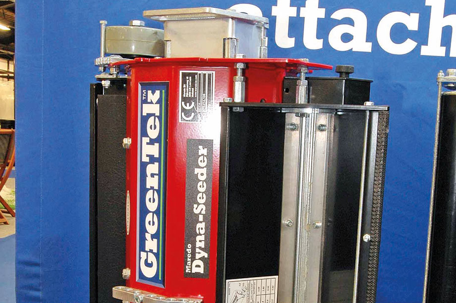 Launched by GreenTek of Leeds, the Dyna-Seeder is an overseeder that fits discreetly onto triple mowers. "Club members and players need never know what you are doing with the new overseeding Dyna-Seeder," the company says.